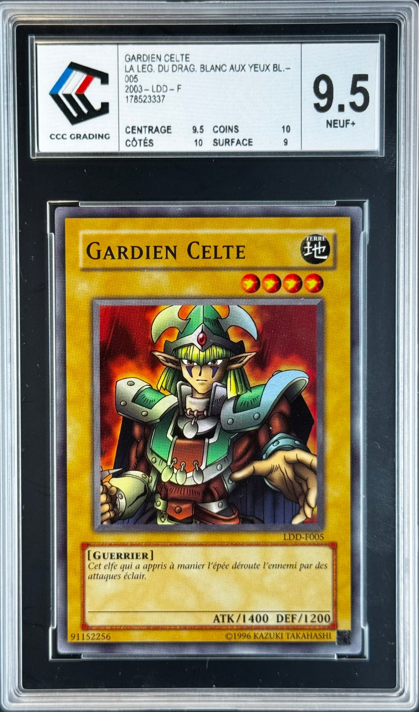 Gardien Celte LDD-F005 gradé 9.5 Carte Yu-Gi-Oh! authentique, état vérifié NearMintTCG, idéale pour collection ou jeu.